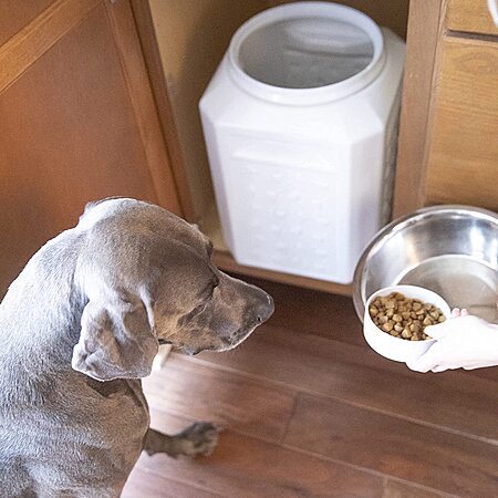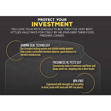 - Food Storage Container: This pest-proof pet food container for dry food keeps food fresh with our patented airtight sealing system that locks moisture out; Design is stackable for space efficiency; Includes scoop