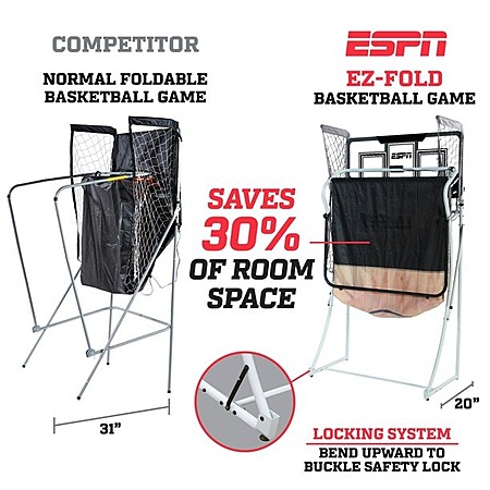 - The ESPN EZ-fold basketball game has unique folding design for compact storage