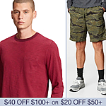 Gap Factory has $20 OFF orders of $50+ OR $40 OFF orders of $100+ when you apply CASH -- subtotal is before coupons. It stacks w/ Extra 30% Off clearance with GFGETMORE (style price ending in $.97). If your order has 1 clearance item, $20 off $50+ applies to entire order