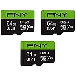 Amazon has 3 Pack PNY 64GB Elite-X Class 10 U3 V30 microSDXC Flash Memory Card 3-Pack - 100MB/s, Class 10, U3, V30, A1, 4K UHD, Full HD, UHS-I