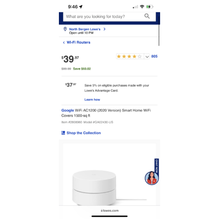 YMMV Google WiFi AC1200 (2020 Version) Smart Home WiFi Covers 1500-sq ft Lowes.com - $39.97