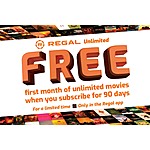 Regal Cinemas: First Month of Regal Unlimited for Free (Offer valid on new 90-day subscriptions) *Expires 12/31/21