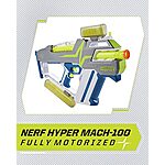 FULLY MOTORIZED NERF HYPER MACH-100 BLASTER: Fire rounds with amazing speed from this fully motorized blaster that unleashes rounds at a velocity of up to 110 FPS. Requires batteries (not included)
