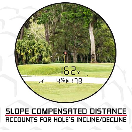 • Slope-compensated distances account for a hole's incline/decline