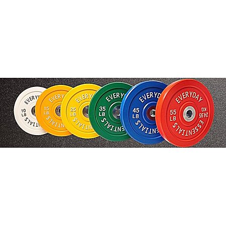 Everyday Essentials Olympic Bumper Weight Plate: 15lb $20, 35lb $43, 55lb