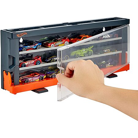 - Connect the case directly to Hot Wheels tracks and watch cars race through the transparent windows where stored vehicles can be pulled into action at any time.