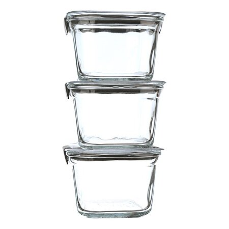 • Three 4.7-cup glass containers with lids, for a total of 6 pieces