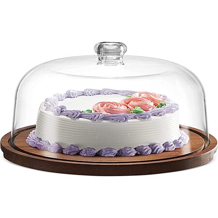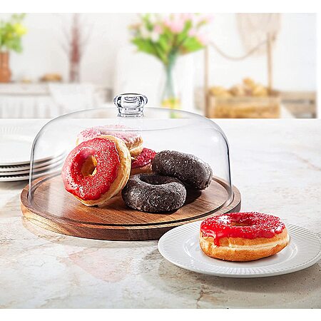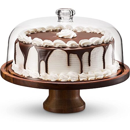 - Stunning Acacia wood cake stand server plate with dome brings sophistication and warmth to any décor. Great for serving, decorating, gifting or entertaining with friends and family.