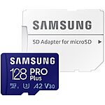 128GB Samsung Pro Plus A2 V30 microSDXC Memory Card w/ Reader $23 or w/ Adapter