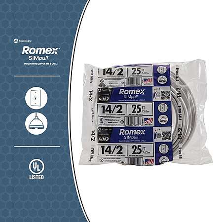Southwire Romex SIMpull 14/2 25' Residential NM-B Cu Indoor Electrical Wire - $12.64 at Walmart