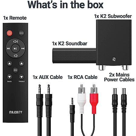 Majority K2 2.1-Ch. Soundbar w/ Wireless Subwoofer + Atlas Portable Soundbar