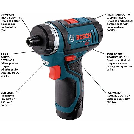 Bosch PS21-2A 12V Max 2-Speed Pocket Driver Kit with 2 Batteries + Drill Bit $80