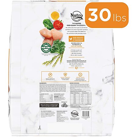 - Contains one (1) 30 lb. bag of NUTRO NATURAL CHOICE Large Breed Adult Dry Dog Food, Chicken and Brown Rice Recipe for large breed dogs ages 18 months and older; real chicken is the no.1 ingredient