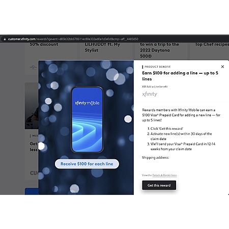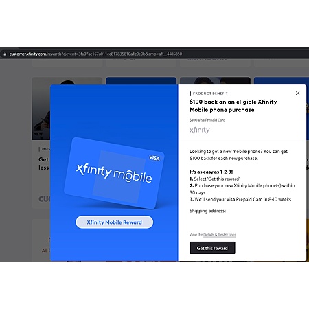 1. "$100 back on an eligible Xfinity Mobile phone purchase"