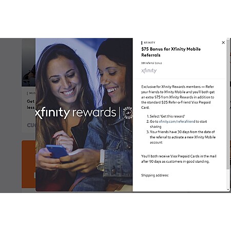Xfinity Mobile Rewards Visa Giftcards: $50 Existing Customers, $100 For Adding a Line, $100 for Buying a Phone, $100 for Referring a Friend