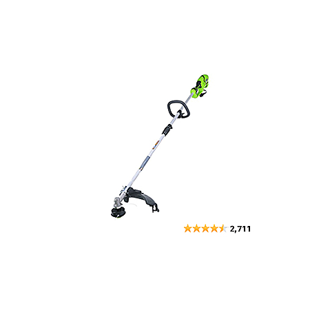 Cushion and over-mold grip and handle for operator comfort with auxiliary handle for more control when trimming. Compatible GreenWorks Replacement Spool, Model 29622
