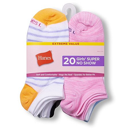Walmart has 20-Pack Hanes Girls Extreme Value No Show Socks (Various Colors) for $6. Shipping is free w/ Walmart+ (free trial) or on orders of $35+.