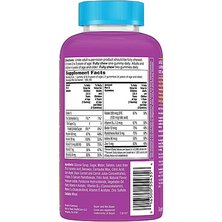 • Directions: Under adult supervision, product should be fully chewed Children 2 & 3 years of age: Fully chew 1 gummy daily Adults and children 4 years of age and older: Fully chew 2 gummies daily