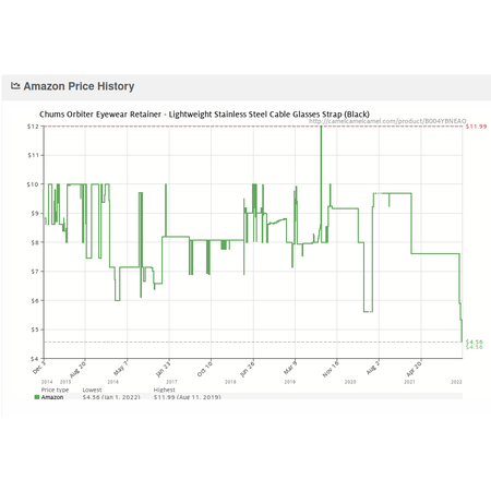 Amazon has Chums Orbiter Lightweight Stainless Steel Cable Glasses Strap (Black, 12403100) on sale for $4.56. Shipping is free with Prime or on $25+ orders.