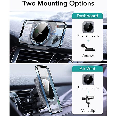 ESR HaloLock MagSafe Car Phone Mount Holder for iPhone 12/13 Series (Silver)