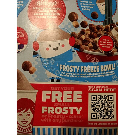 This was on the back of the Wendy's Frosty Cereal[kroger.com]. Kroger had the cereal for $2.50 and there was a $2 off coupon on the box if you bought another Kellogg's cereal.