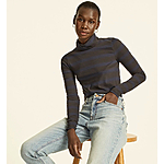 J. Crew Women's Tissue Striped Turtleneck $7.50, Boots: Nordic (Yellow) $34, Elsa Puffer $37.10, Lace-Up Knee-High (2 colors) $53.05 + FS
