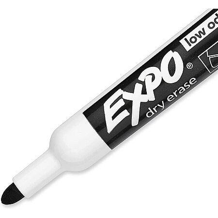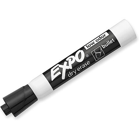 Amazon[amazon.com] has 12-Pack EXPO Low-Odor Bullet Black Dry Erase Markers (82001) for $5.04. Shipping is free w/ Prime or on $25+.