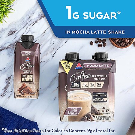 Model: Atkins Mocha Latte Protein-Rich Shake. With High-Quality Protein. Keto-Friendly and Gluten Free. (4 Shakes)
