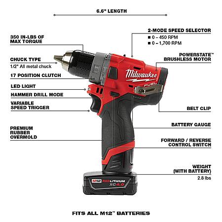 - Milwaukee M12 Fuel 12-Volt Brushless Cordless Hammer Drill & Impact Driver Combo Kit
