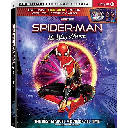 Target is accepting pre-orders for their exclusive release of Spider-Man: No Way Home, which includes 4K/UHD + Blu-ray + Digital copy. Looks like it includes collectible cards and different artwork.