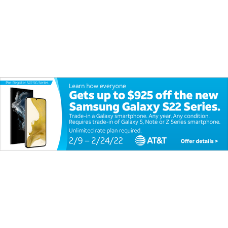 AT&T Get up to $925 off the new Samsung Galaxy S22 Series