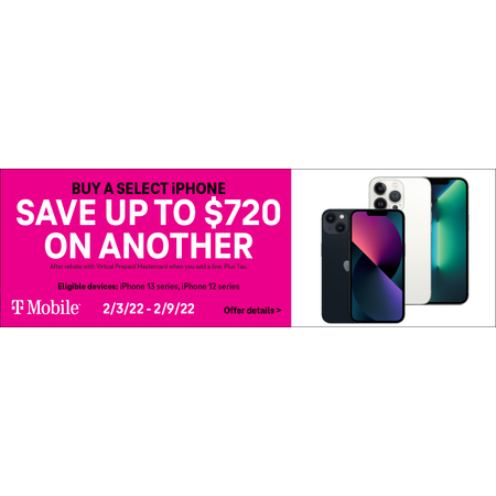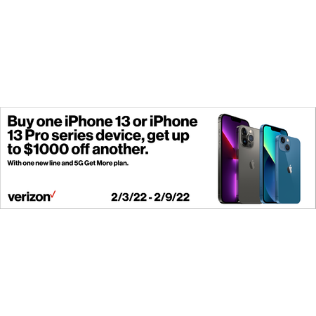 Buy one iPhone13/iPhone13Pro and get up to $1000 off another (with one new line and a 5G Get MorePlan)
