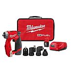 The Milwaukee M12 FUEL Installation Drill/Driver Kit features 4 dedicated solutions, delivering unrivaled access and control with up to 300 in./lbs. of maximum torque. 4 dedicated heads, including a 3/8 in. Chuck, Offset Driver, 1/4 in. Hex and Right Angle, can attach in 16 different positions. This provides users with a 4-in-1 drilling and driving solution that is purposefully designed to reach challenging locations. The compact drill driver features a slim tool profile and an inline grip in the back of the tool that provides ultimate tool control and unrivaled access. The front of the tool is equipped with a magnetic bit holder that securely holds multiple bits, enhancing user productivity. These unique features combine with the tools compact size and weight enabling users to maneuver the multi-head drill/driver for maximum versatility and best access in hard to reach places. The modular drill/driver is equipped with a POWERSTATE Brushless Motor, delivering users with 1600 RPM and 300 in./lbs. of torque. This provides them with the necessary power for installation applications, especially in electrical, cabinet installation, MRO, HVAC, automotive and remodel applications. The installation drill/driver features REDLINK Plus Intelligence, protecting the user's tool from overloading or overheating. The compact cordless drill/driver is powered by the Milwaukee M12 REDLITHIUM battery packs, delivering users with more run-time per charge and more work over the life of the pack.
