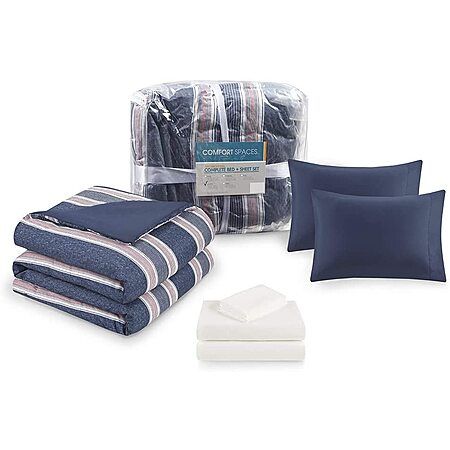 Model: Comfort Spaces Bed in A Bag Comforter Set - College Dorm Room Essentials, Complete Dormitory Bedroom Pack And Sheet with 2 Side Pockets, Queen, Wallace Navy/Red 9 Piece
