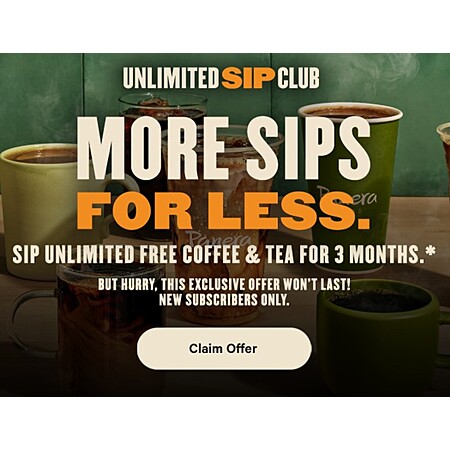 Panera Bread: 3-Months Unlimited Sip Club Coffee & Tea