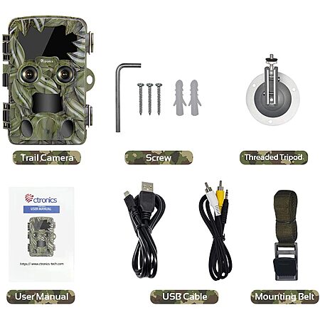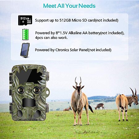 Model: Ctronics 4K 20MP Dual-Lens Trail Camera Starlight Night Vision, Wildlife Game Camera Motion Activated Waterproof Deer Hunting Camera for Outdoor Wildlife Monitoring Trigger Speed 0.2s