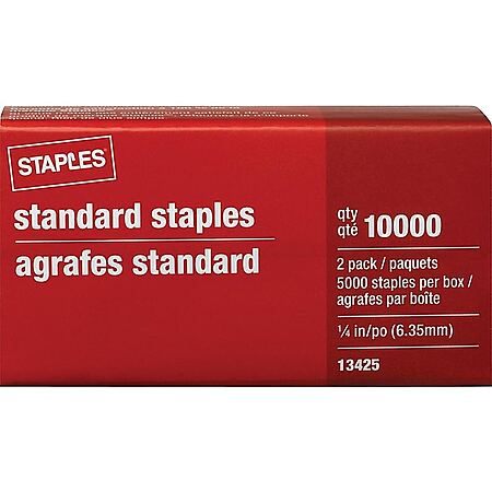 Model: Staples Standard Staples, 1/4" Leg Length, 5000 Staples/Box, 2 Boxes/Pack (13425-US)