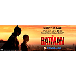 "*Purchase any of the titles (in any format) listed at https://www.vudu.com/content/movi...tion/13206 on Vudu or via participating Vudu apps between 2/22/2022 through 3/7/2022 and receive a Fandango Promotional Code ("Code") via post-purchase e-mail good towards the purchase of one movie ticket (up to $8 total ticket and convenience fee value) to see The Batman at Fandango partner theaters in the US. Code is void if not redeemed by 3/20/2022 or when The Batman is no longer in theaters, whichever comes first. Only valid for purchase of movie tickets made at Fandango.com or via the Fandango app and cannot be redeemed directly at any theater box office. If lost or stolen, cannot be replaced. No cash value, except as required by law. Void where prohibited. Not valid with any other offer. One-time use only. Not for resale; void if sold or exchanged. You may be required to pay taxes separately. One code per transaction. If cost of movie ticket with Fandango's convenience fee included is more than maximum value of the Code, then user must pay the difference. Any price difference between movie ticket purchased and maximum value of the Code will not be refunded. The redemption of the Code is subject to Fandango's Terms and Policies at https://www.fandango.com/policies/terms-and-policies."