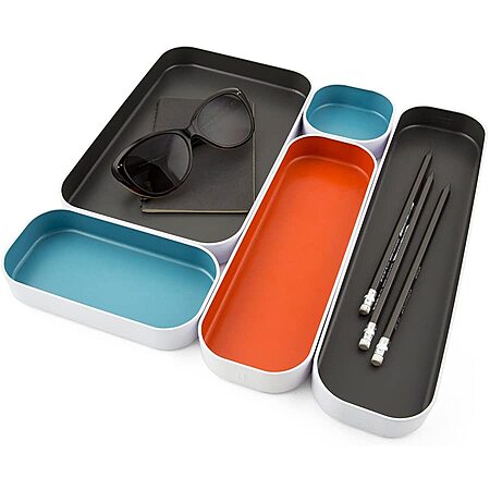 Drawer Organizer Pack of 5, 1", Gray/Sky Blue/Orange $14.23