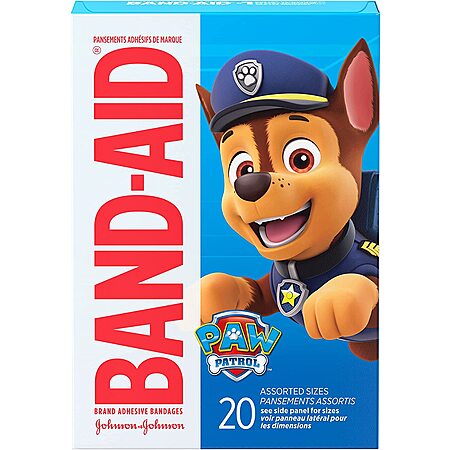Amazon [amazon.com] has 20-Count Assorted Band-Aid Bandages for Kids (Nickelodeon Paw Patrol) for $3.27 - 5% when you checkout via Subscribe & Save - $0.80 when you apply the coupon on the product page = $2.31. Shipping is free w/ Prime or on $25+.