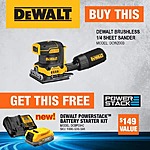 Home Depot has DeWALT 20V Max XR Cordless Brushless 1/4 Variable Speed Sander (Tool Only) + 20V Max PowerStack Compact Battery Starter Kit on sale for $139 when you follow the directions listed below. Shipping is free, otherwise, select free curbside pickup as an alternative option.