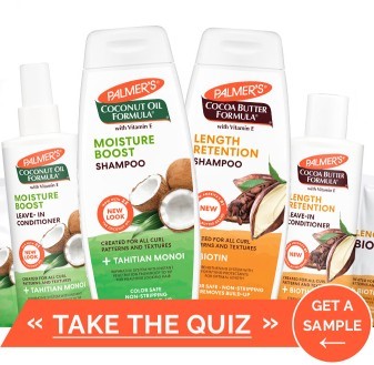 Palmer's is offering their Palmer's Haircare Products Sample Pack for Free when you complete a quiz and then provide your shipping address information on the form. Shipping is free