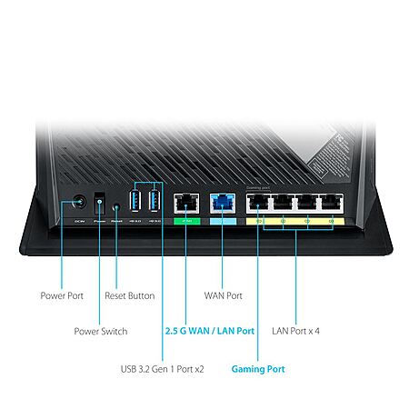 • This ASUS RT-AX86U router offers ultrafast WiFi speeds up to 5700 Mbps that supports up to 2 Gbps internet connection and lag-free/low latency mobile gaming experience