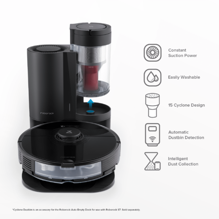 Roborock S7 Robot Vacuum and Mop with Auto-Empty Dock + Cyclone Dustbin Bundle for