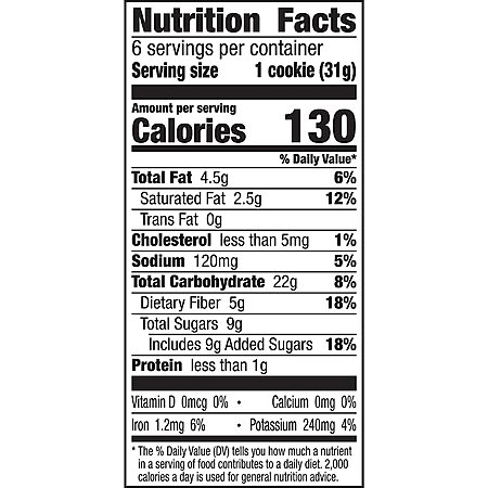 Model: Fiber One Cookies, Chocolate Chunk, Soft-Baked