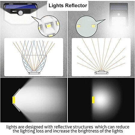 Model: HMCITY Solar Lights Outdoor 120 LED with Lights Reflector and 3 Lighting Modes