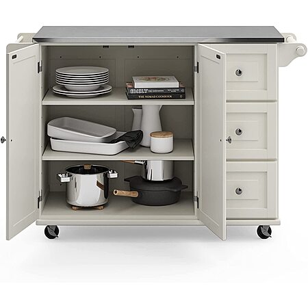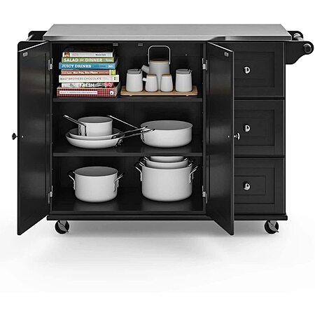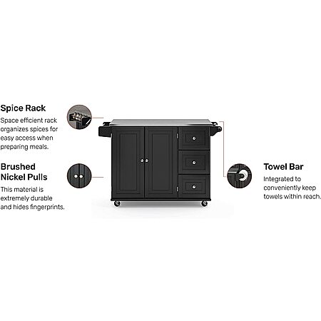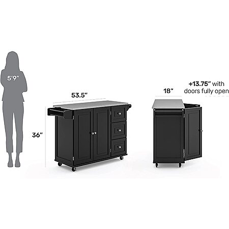 Homestyles Stainless Steel Top Kitchen Cart Rolling Mobile Island: Black