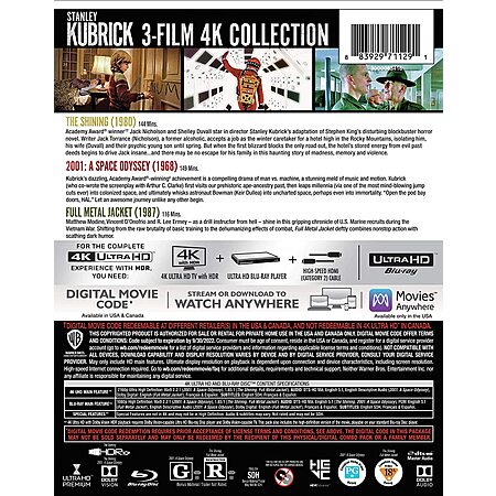 Amazon.com has Stanley Kubrick 3-Film Collection (4K UHD + Blu-ray + Digital) on sale for $39.99. Shipping is free.