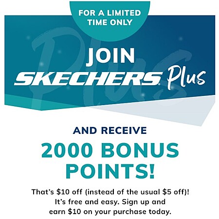 Create a New Skechers Plus Account, Earn 2,000 Points ($10 off reward). Possibly Free Socks + Free Shipping