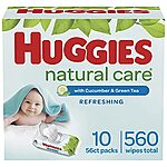 560-Count Huggies Natural Care Refreshing Baby Wipes (Cucumber/Green Tea) $11.47 w/ S&S + Free Shipping w/ Prime or on orders over $25